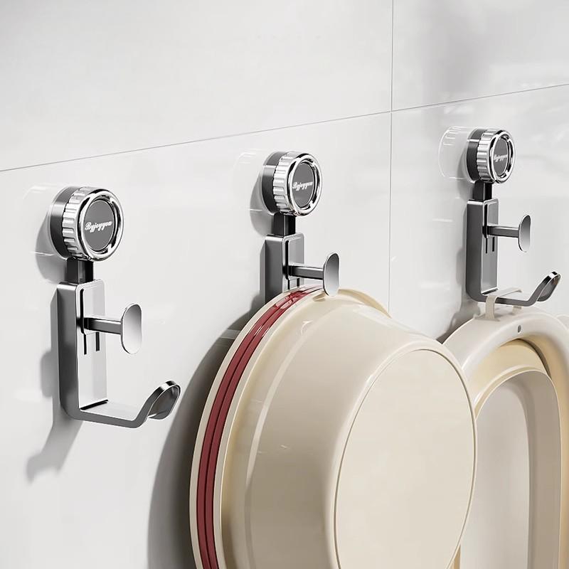 大小さまざまな洗面器やタライに対応できる、吸盤式のフックセット。