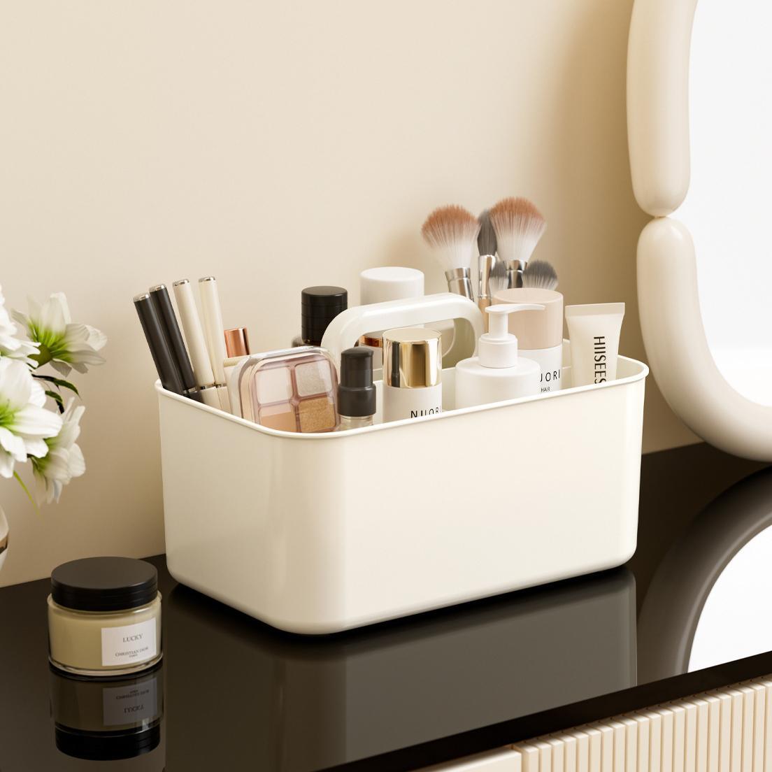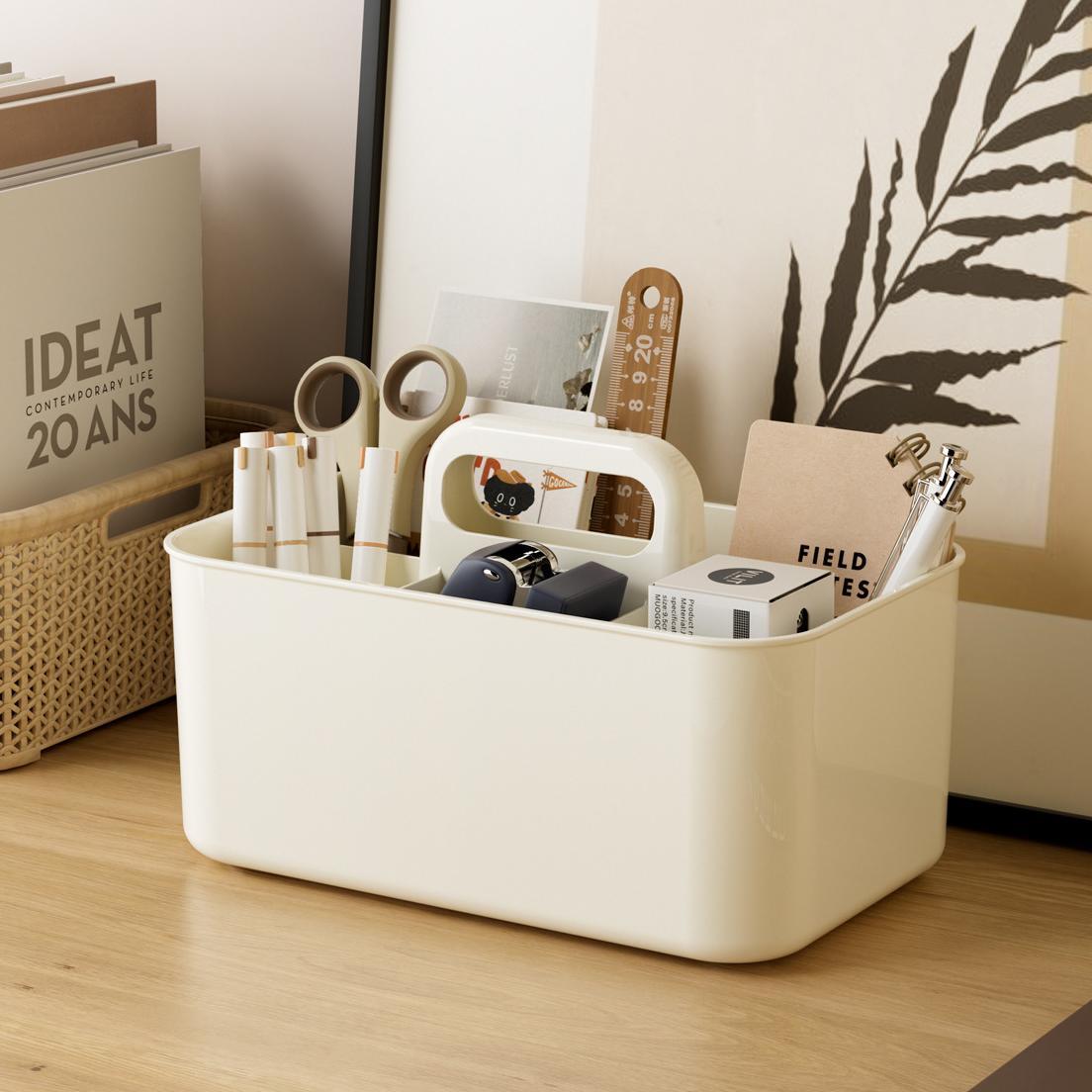 透明卓上収納バスケット 持ち手付き メイク・文具分類収納ボックス HS0061