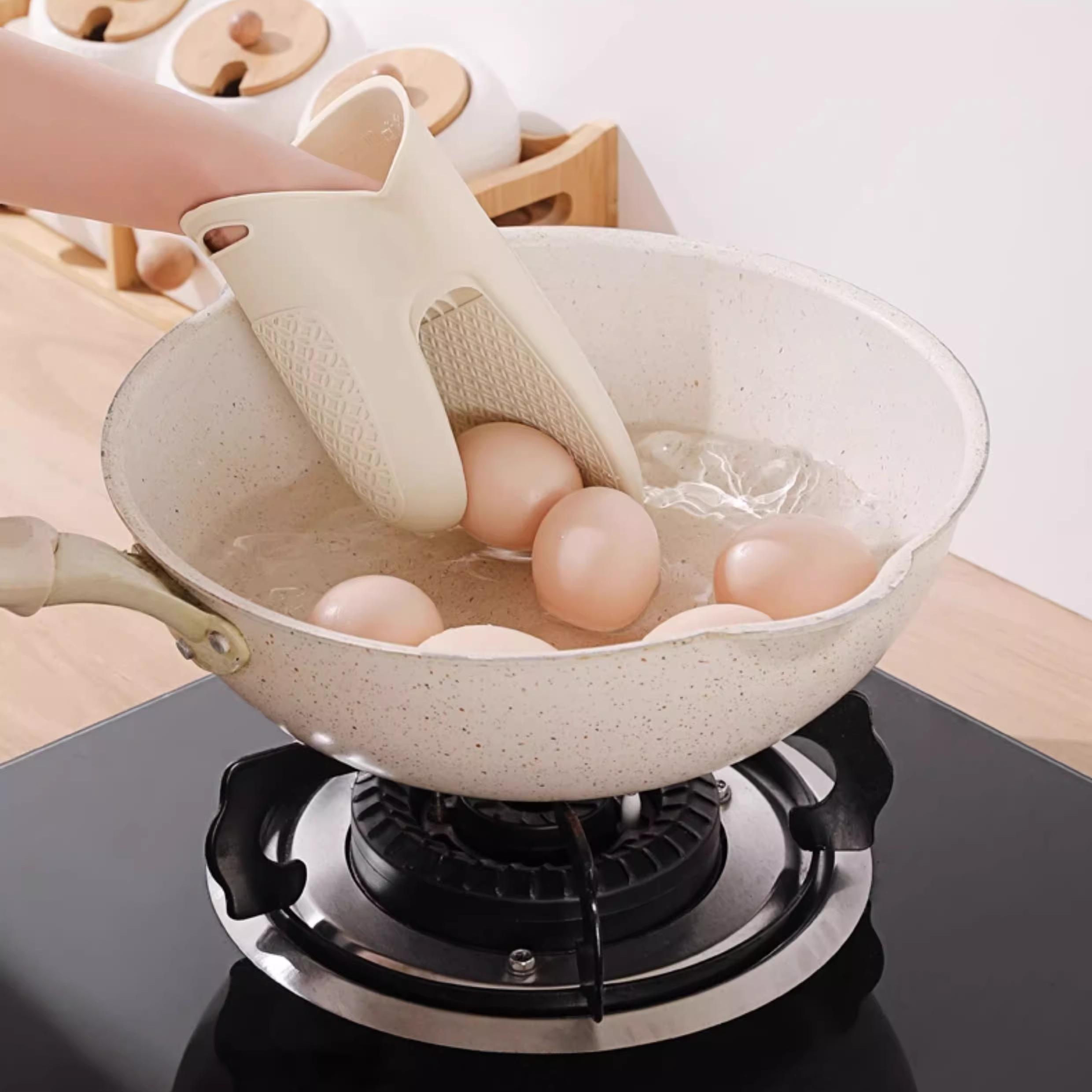 ロングカフが蒸気から手首と甲をしっかり守ります。