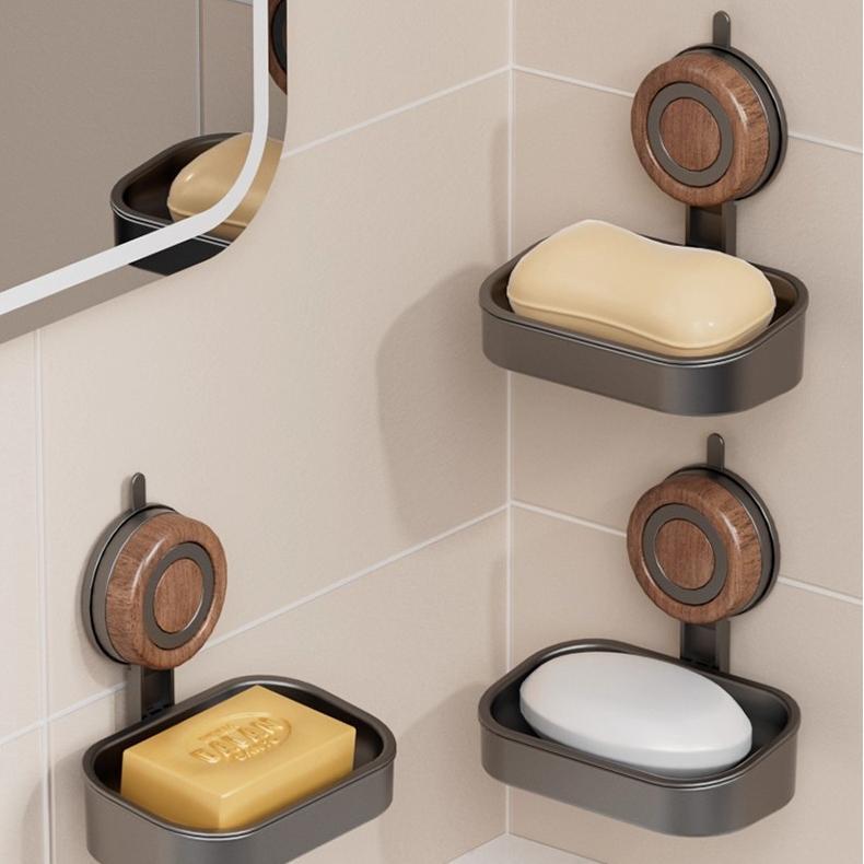 木目調デザインがおしゃれな吸盤式ソープディッシュです。