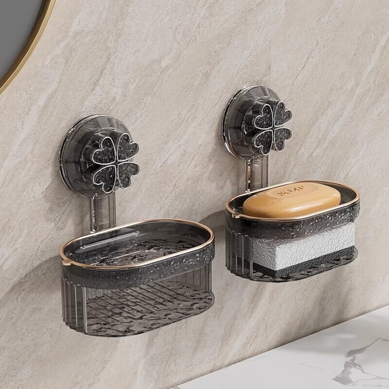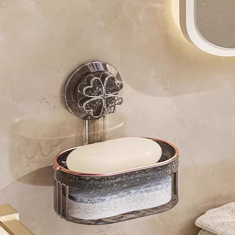 2個セット クローバーデザイン 吸盤式ソープディッシュ 壁掛け 水切り速乾 HS0107