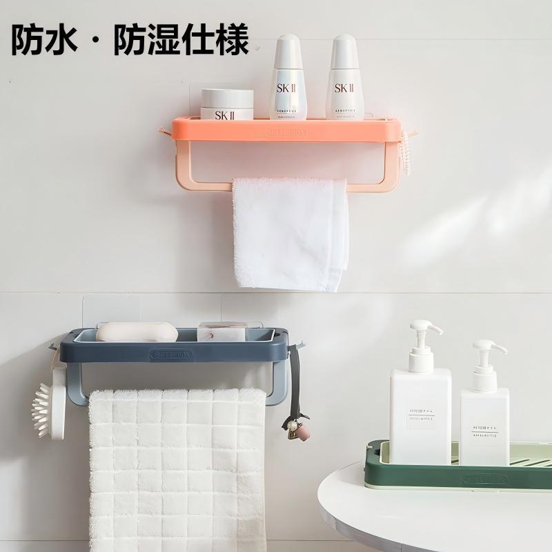 ボディタオルや洗顔ネット、ヘアゴムなどの小物も一緒に掛けられ、スペースを有効活用できます。