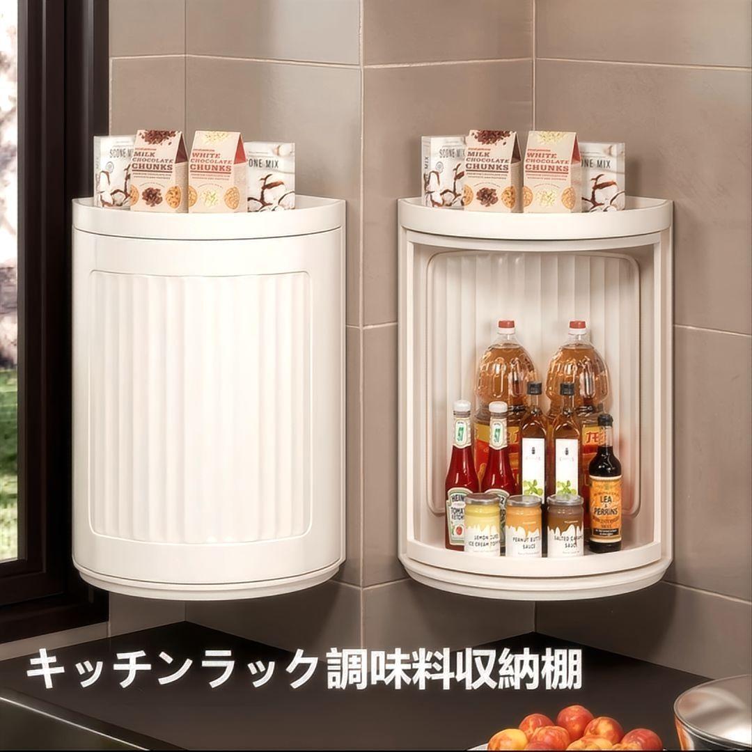 キッチンのデッドスペースを有効活用できる360°回転式収納ラックです。
