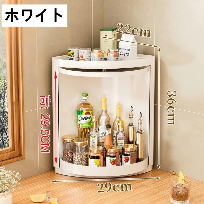 調味料や小物をまとめて収納でき、回転させるだけで必要なものをすぐ取り出せる操作性の高さが魅力です。