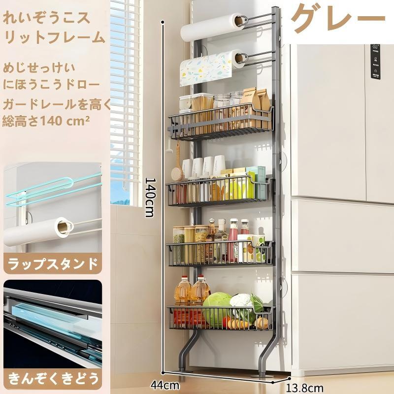冷蔵庫横のスリム収納ラック。狭い隙間を有効活用できる多層棚 HS0151