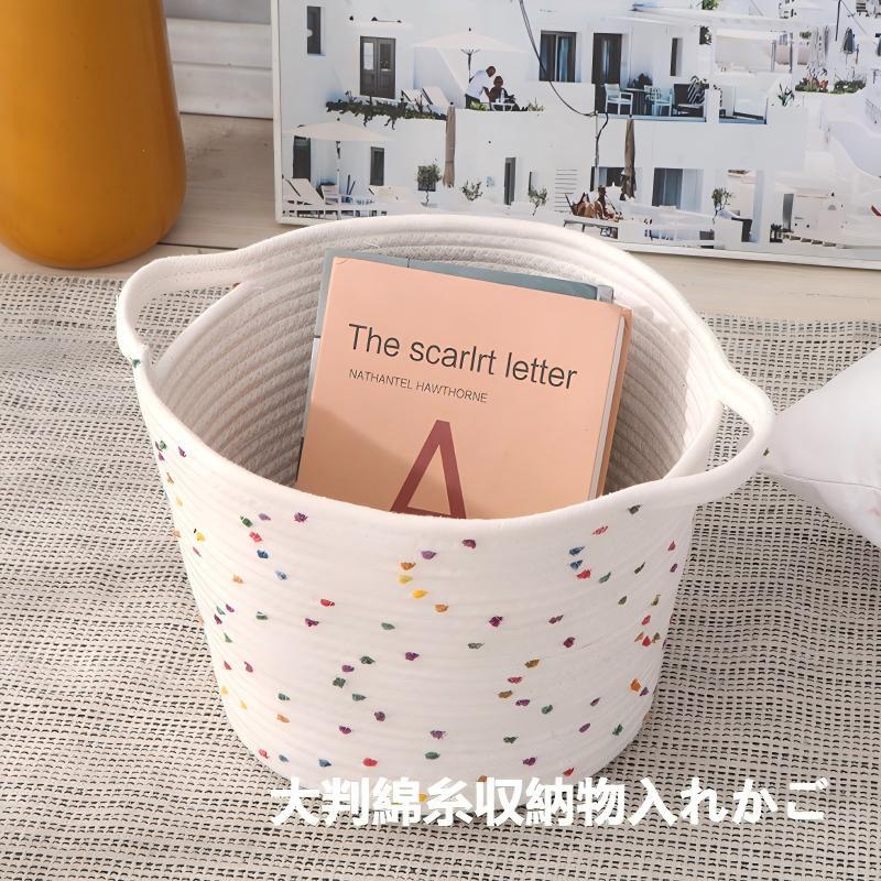 大容量コットンロープ収納バスケット|厚手ロープのしっかり自立デザイン HS0156