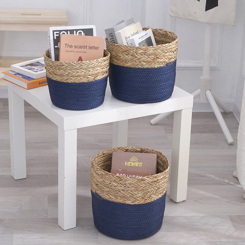 手編みナチュラル収納バスケット おしゃれで使いやすい万能カゴ HS0167