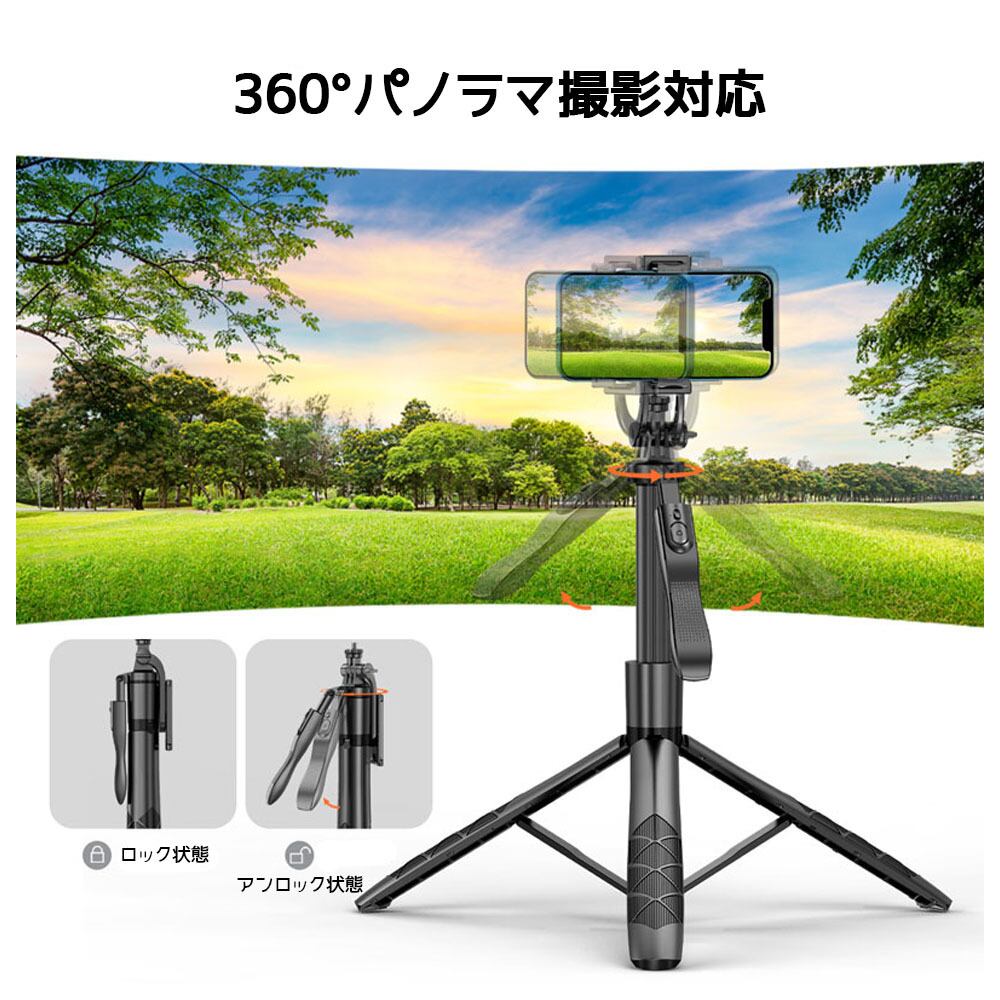 Bluetooth自撮り棒 セルカ棒 360° で横向き・縦向き撮影 270° で上下チルト撮影 リモコン付き 遠隔撮影 収納簡単 三脚スタンド 安定した支持 GoPro シリーズ/デジタルカメラシリーズ/1/4inch 規格のリングライト/デュアルリングライト対応 IB0024