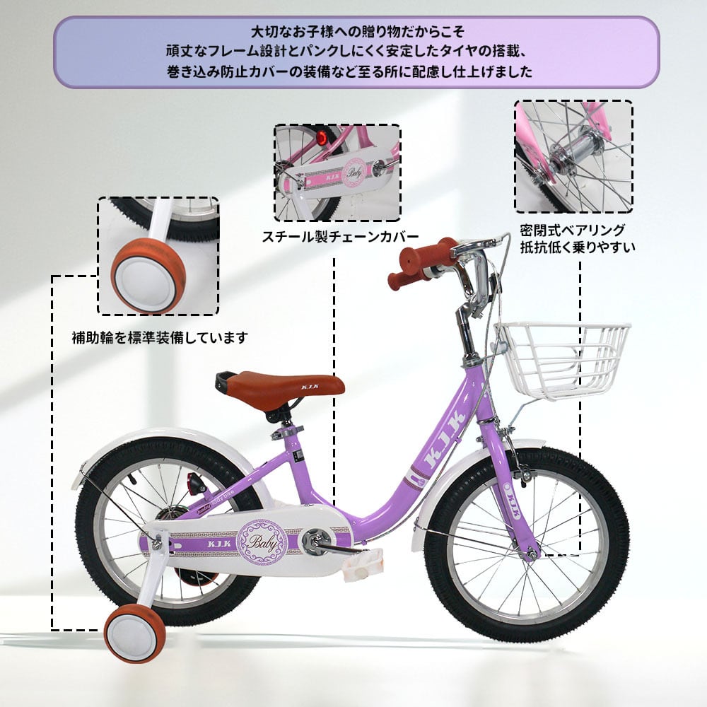 子供用自転車 16インチ キッズバイク 幼児用自転車 補助輪付き カゴ付き 密閉式ベアリング 卷き込み防止カバー 7歳まで 体重30kg以下 通学 アウトドアー 1年保証 IB0033