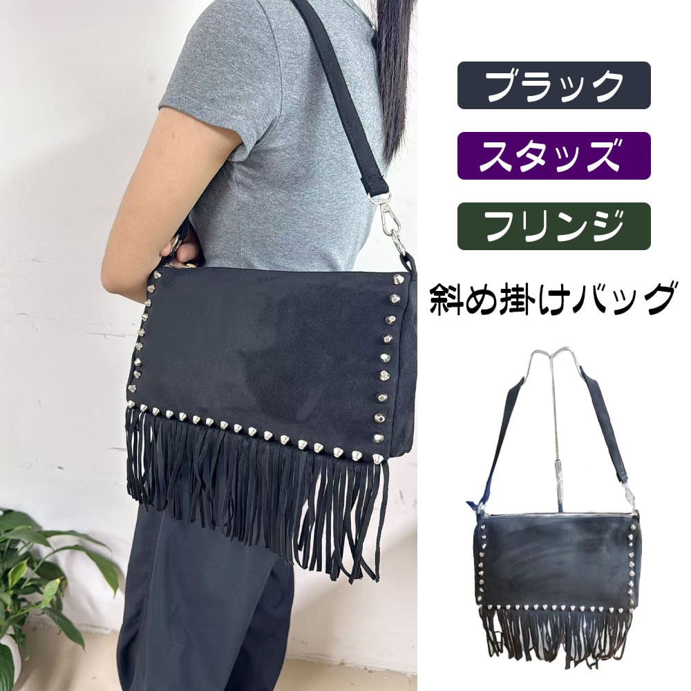 パッグ 斜め掛けバッグ 肩掛けバッグ プラックスエード スタッズ フリンジ 型崩れしにくい 大容量 長さ調節可能な肩ひも シンプル ロック パンク ボヘミアン 日常に 特別なシーン ファッション ライブ パーティー IB0048 | 暮らしのHOUSE