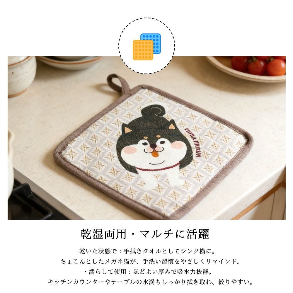 シバイヌ柄 厚手高吸水性ふきん2枚セット 乾湿両用の台拭き手拭きタオル ループ付で吊り下げ収納可能 可愛いドッグ柄の台所用布巾 キッチン用品 IB0136